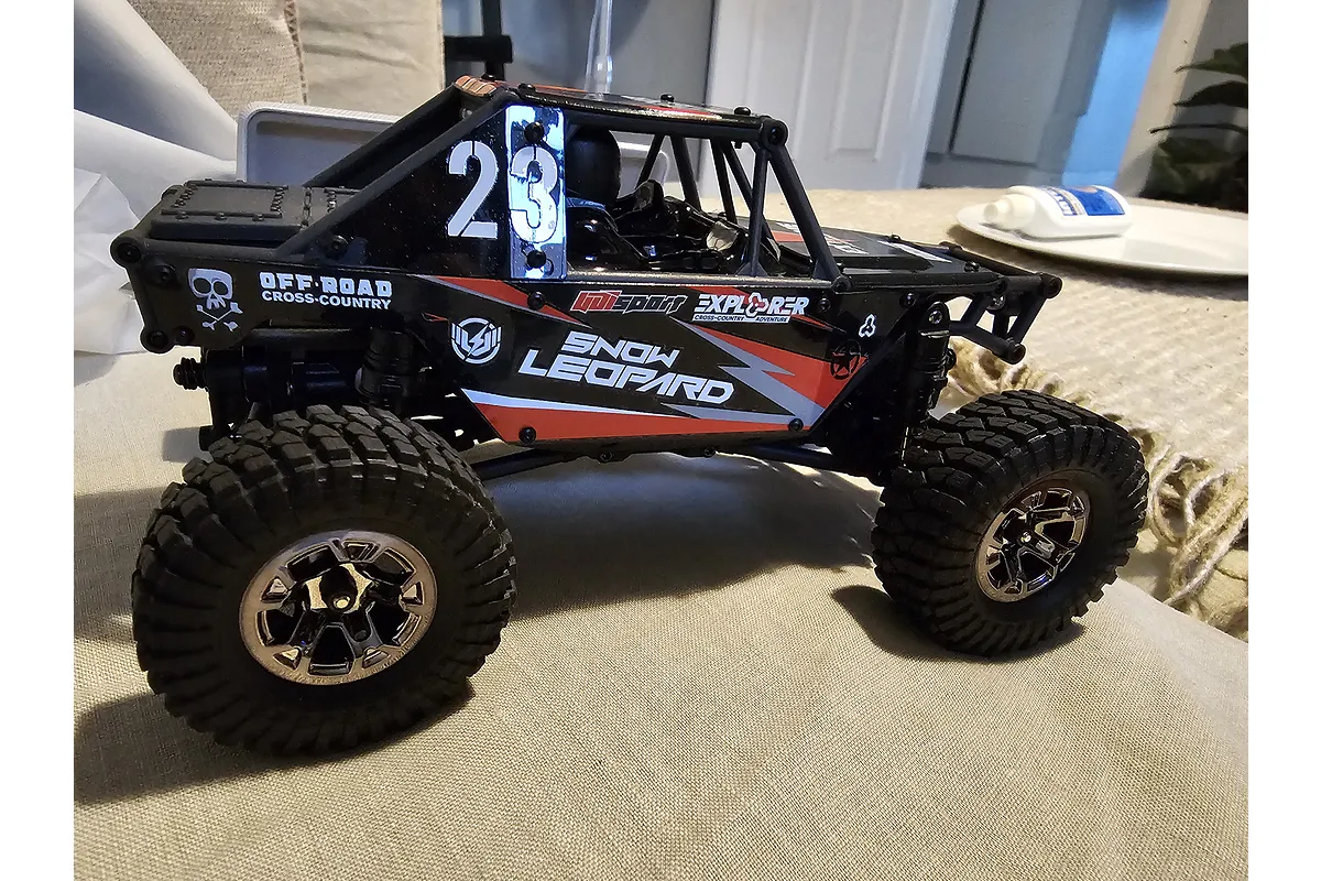 The Snow Leopard is packed with innovative features, including a forward-leaning motor position for improved climbing ability and a unique Speed Control & Receiver (SCR) unit that allows for easy installation of optional LED lights. The included 350mAh LiPo battery and USB charger provide ample power and convenient charging, while the 4CH-2.4GHz transmitter offers precise control and long-range operation. Whether you're a seasoned RC enthusiast or new to the world of rock crawling, the UDI UCX24 Snow Leopard is ready to deliver an unforgettable experience.