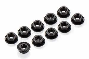 | XRAY Silver Aluminium 4mm Flanged Serrated Nuts | 10 |