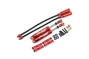 A premium upgrade for RC crawler enthusiasts seeking top-tier suspension performance. These shocks feature an innovative piggyback design, which incorporates a separate oil reservoir to provide more consistent and effective damping control, especially during demanding crawls and challenging terrain. The internal spring setup maintains a clean, realistic scale appearance by keeping the springs hidden within the shock body, enhancing the aesthetic appeal of your rig. Constructed from durable aluminium and available in various colours, these shocks are built to last. They come equipped with a double O-Ring sealing cartridge, designed to prolong the lifespan of the internal seals and effectively prevent shock oil leakage, ensuring reliable and consistent performance over time. This design allows for fine-tuning by adding your choice of shock oil to achieve your preferred damping characteristics. All hardware required to install these shocks onto the crawler is included, making the upgrade straightforward and convenient.
