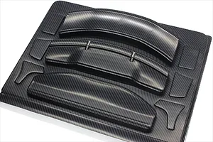 Add some style to your drift or on onroad bodies with these rear boot mounted rear wings! With adjustable angle, you will be able to customize the mount to your liking. Comes with two different wings which measures 52 and 135mm wide, this wing mount set offers a large variety of personalization! The wing mount plates are made from real carbon fibre.