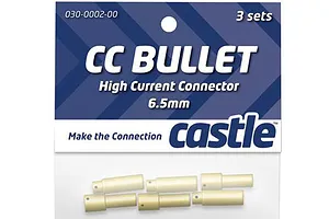 High current 6.5mm bullet plugs for connecting large scale rc motors. These plugs allow more current to flow through them when paired with thick gauge wiring, perfect for large rigs which pull lots of amps.