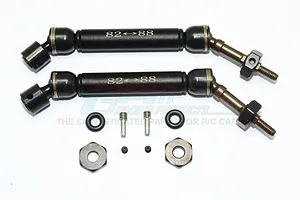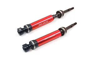 HD Universal drive shafts for Traxxas's 4x4 version of Slash and Stampede, made from "Tool Grade Steel", giving good tensile strength. Whilst the middle sleeve is made from Aluminum to keep weight low giving a good balance between weight and strength!